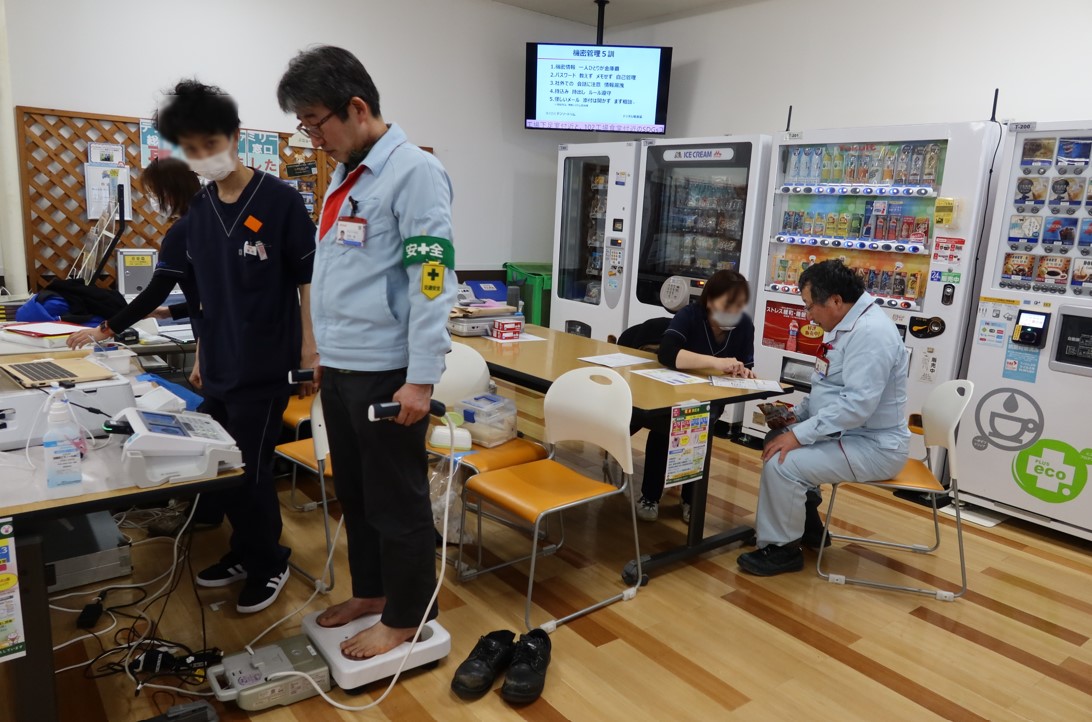 各自の健康状態の確認や健康意識・行動の変容を支援するため、食堂や休憩所にて気軽に測定できる健康チェックイベントを実施しています。