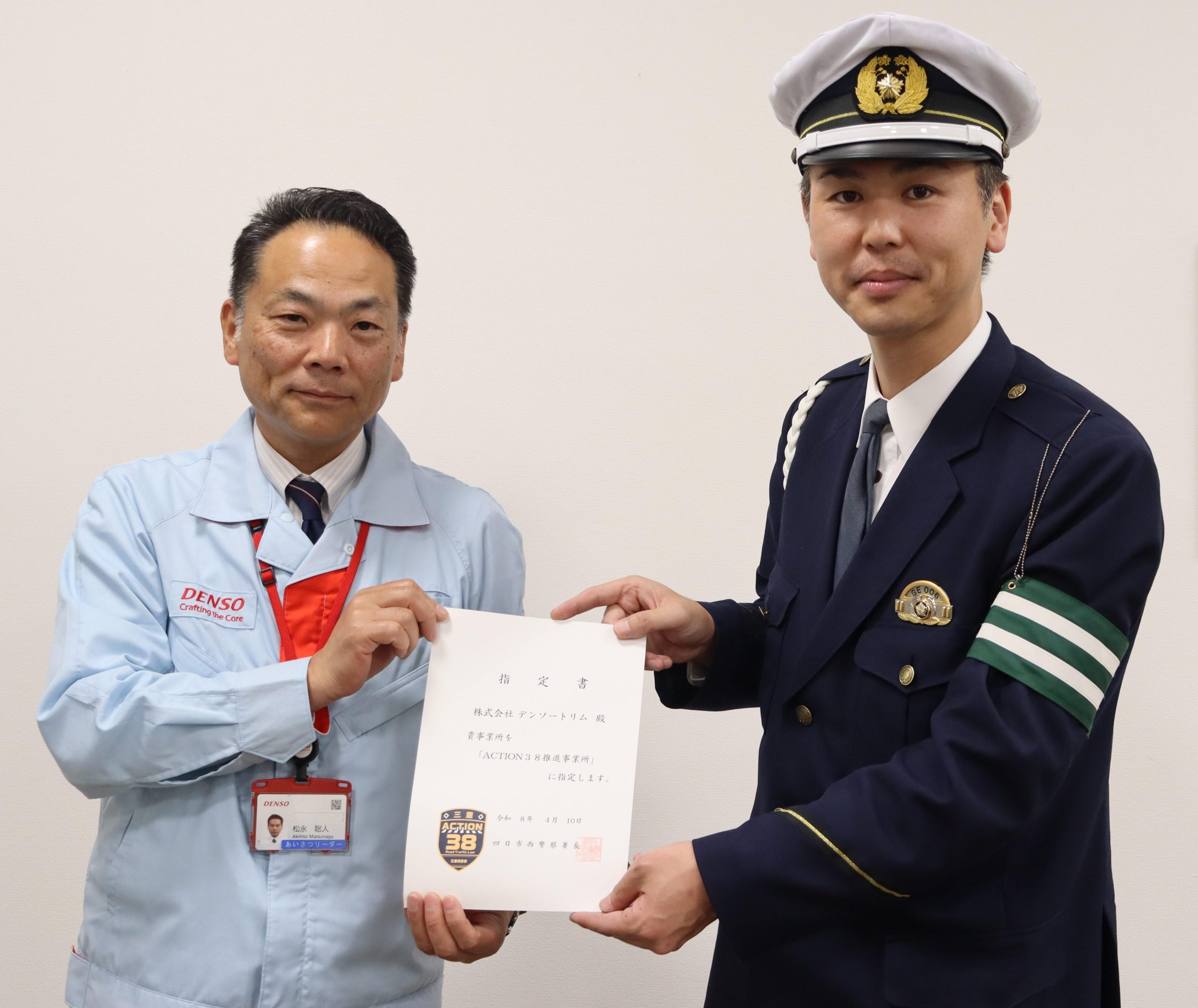 本公司于4月10日被三重县四日市西警察署指定为“ACTION 38”推进示范事业单位。